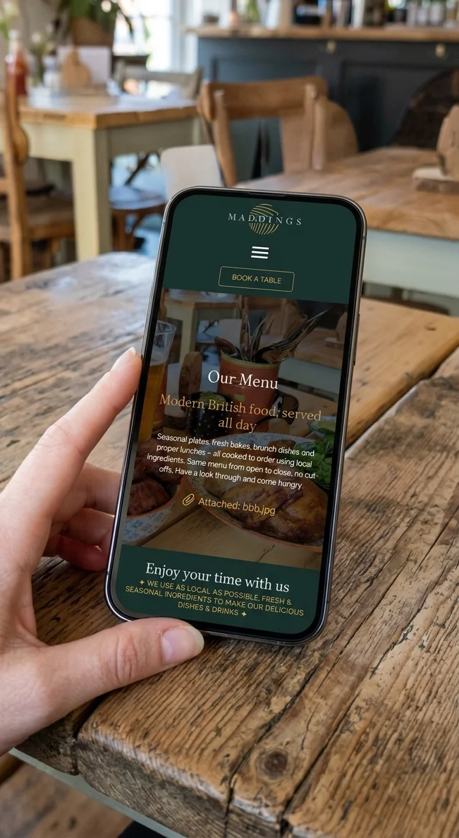 Before we write a single line of code we spend time understanding your restaurant. How you work, who your customers are, what makes people come back, what you want more of. A fine dining venue in London needs a completely different structure, tone and design to a relaxed neighbourhood bistro in Bristol or a family run Italian that’s been on the same street for thirty years.