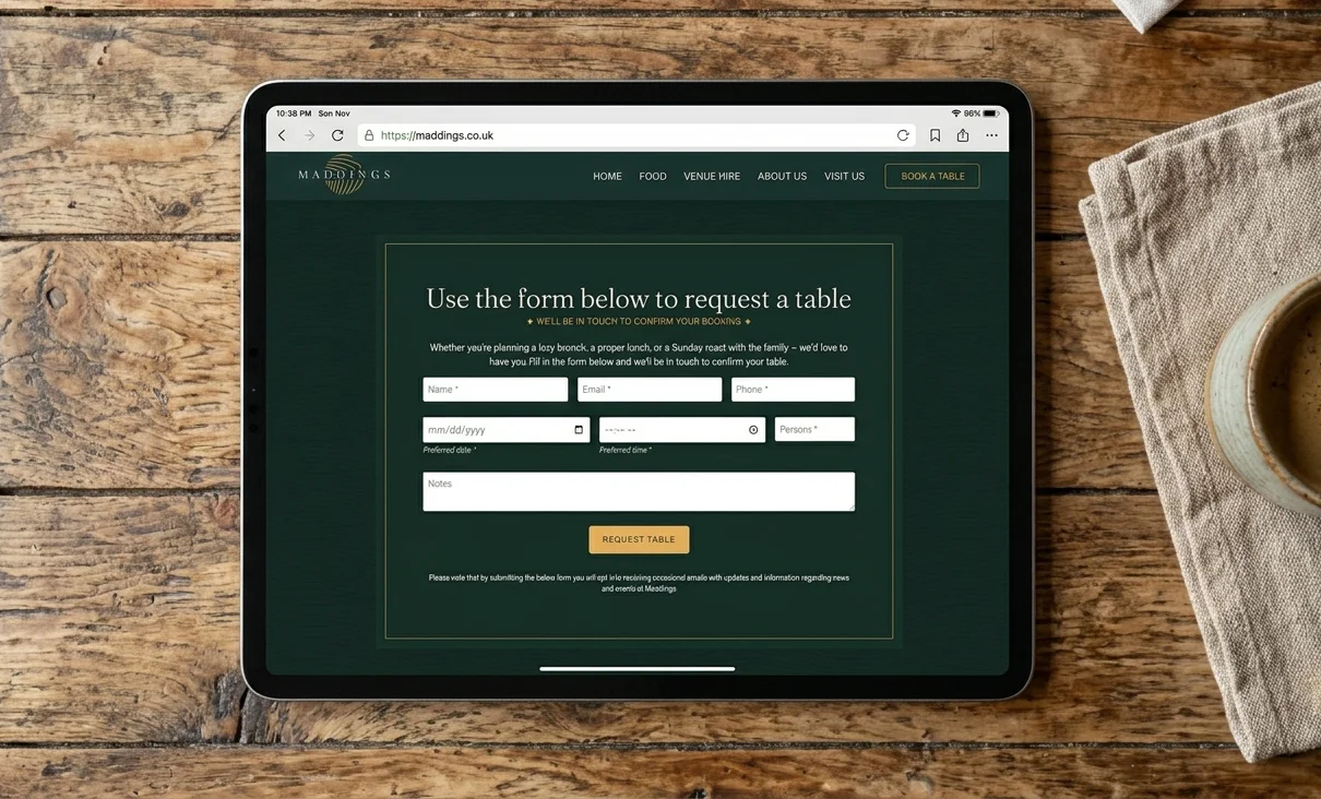 A good restaurant website is not a digital brochure. It is a working part of your business. It brings people in, answers their questions, takes their bookings and represents your restaurant properly – at midnight on a Sunday just as well as at noon on a Saturday.